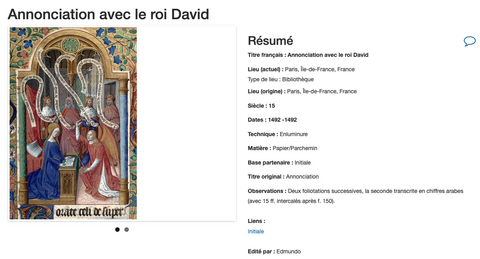 Le cœur du travail d'Edmundo au sein d'OPUS est dédié à la base de données Musiconis , une métabase de données qui rassemble des représentations du son et de la musique médiévale.